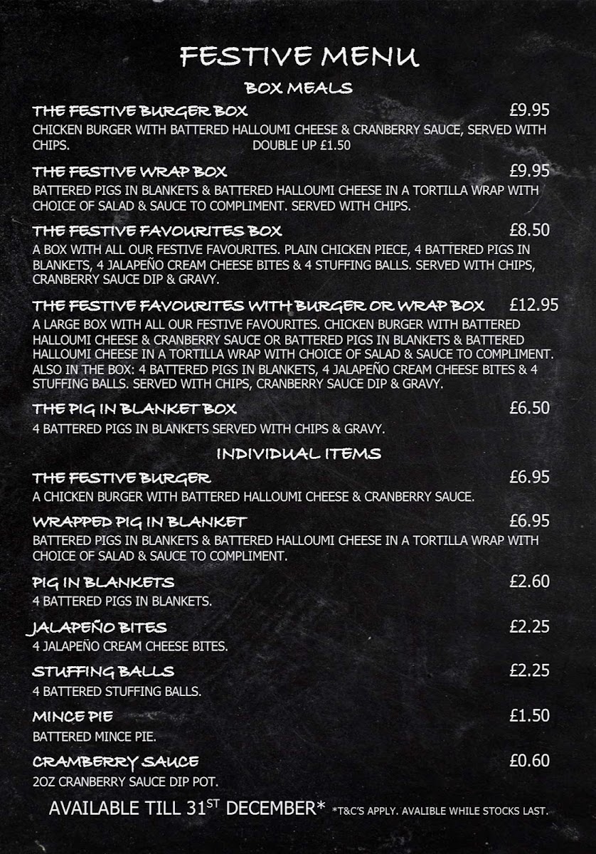 The menu at Our Plaice offers a delightful selection of hearty, satisfying dishes that are perfect for any occasion. Their Fish and Chips stands out as a classic favorite, with crispy, golden batter encasing flaky fish, paired with freshly cooked chips that are sure to please. Another popular choice is the Mixed Meat & Chips, offering a generous combination of tender meats served alongside chunky, well-seasoned fries. For those seeking something even more indulgent, The Mighty Meat Box delivers a meaty feast with a variety of flavors and textures that promise to satisfy even the biggest appetites. The Kebab Burger or Wrap One is a unique twist on the traditional kebab, presented in a burger or wrap form for those looking to enjoy a delicious, portable meal. The menu balances familiarity with innovation, ensuring that there's something for everyone, whether you're after a comforting classic or a bold, new creation.